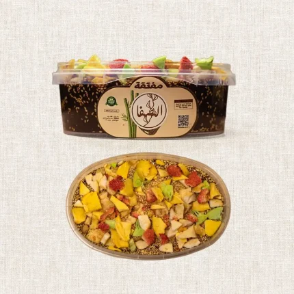½ kg Fruits & Nuts Maftaqa (almonds, walnuts, cashews halves, crushed cashews, and crushed dried fruits) for a fruity, vibrant twist.
