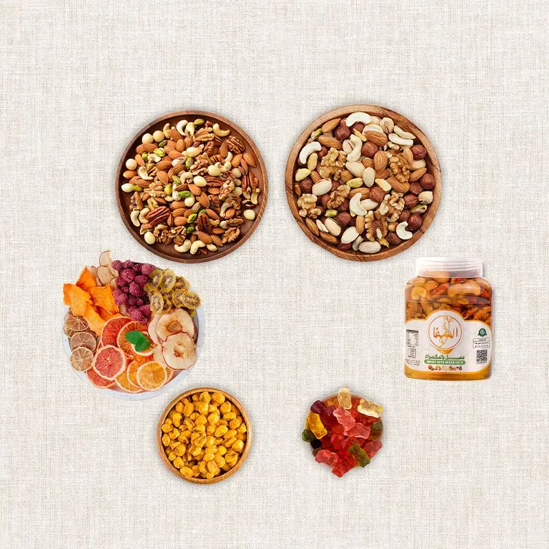 تشكيلة مختارة من أجود المكسرات وأفخر أنواع الياميش، مثالية للضيافة الخفيفة والهدايا الأنيقة.